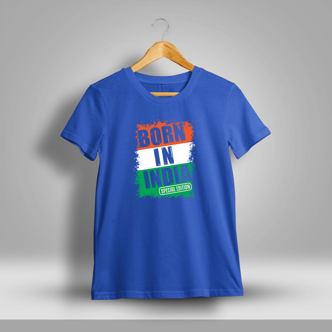 Show your roots with ‘Born In India’ printed T-shirt. A classic design for proud Indians who love their homeland. Comfortable, breathable, and patriotic.