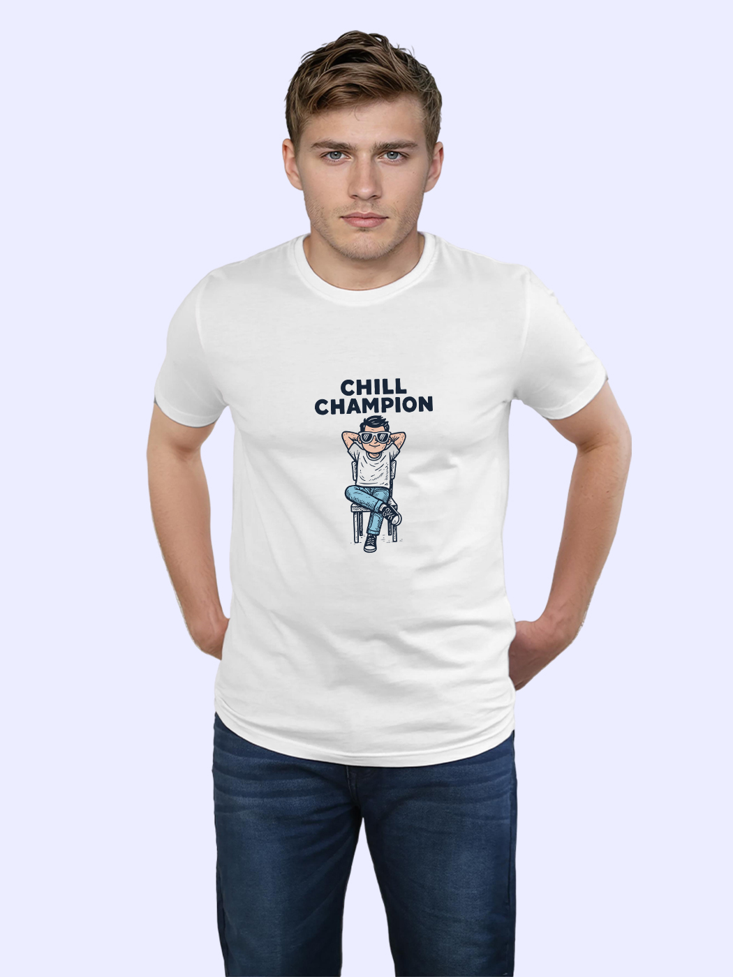 Chill Champion T-Shirt for men with half sleeves. Perfect blend of comfort and casual style. Ideal for everyday wear, parties, or gifting.