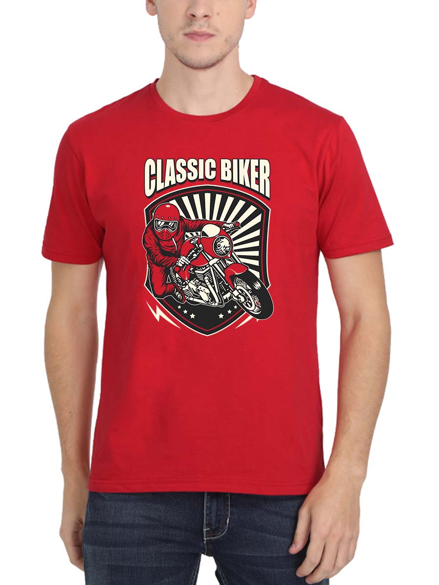 Ride in style with our Classic Biker tee. Men Half Sleeve T-shirt for Bike lovers. Perfect for the road ahead. Shop now!
