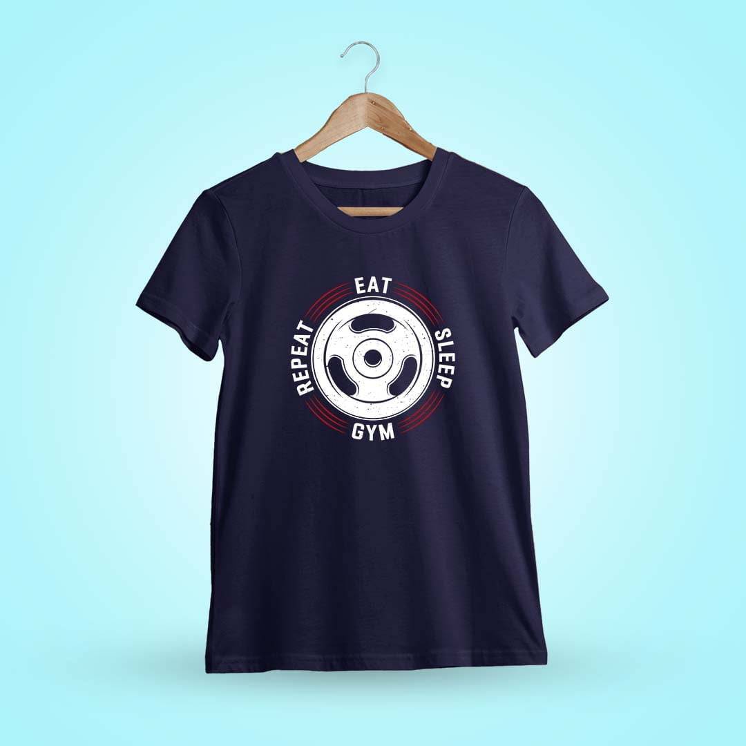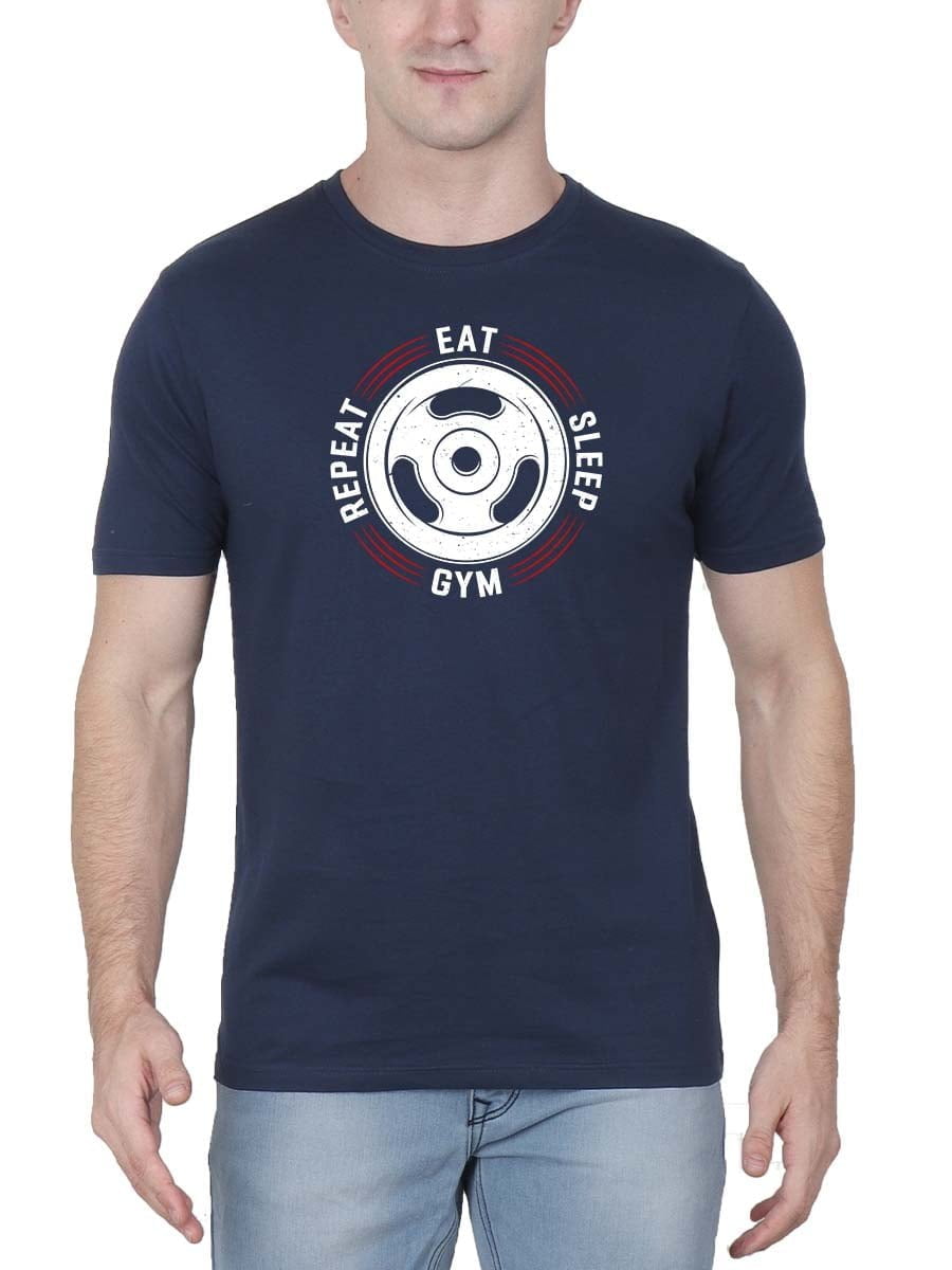 Elevate your workout with our ‘Eat Sleep Gym Repeat’ gym T-shirt as Men Half Sleeve. Perfect for fitness enthusiasts. Stay motivated with style!