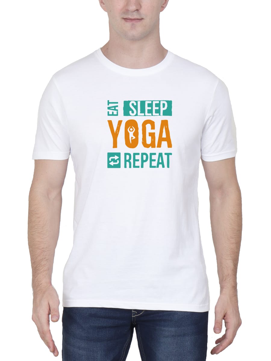 Express your daily mantra with our ‘Eat Sleep Yoga Repeat’ t-shirt, designed for men who live and breathe yoga, on and off the mat.