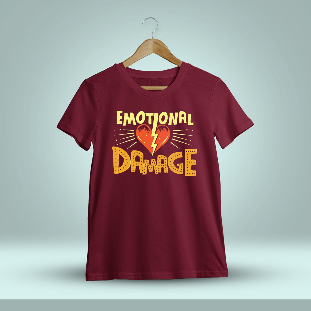 Express your inner struggles with our Emotional Damage T-shirt. Perfect for those who wear their emotions on their sleeves.