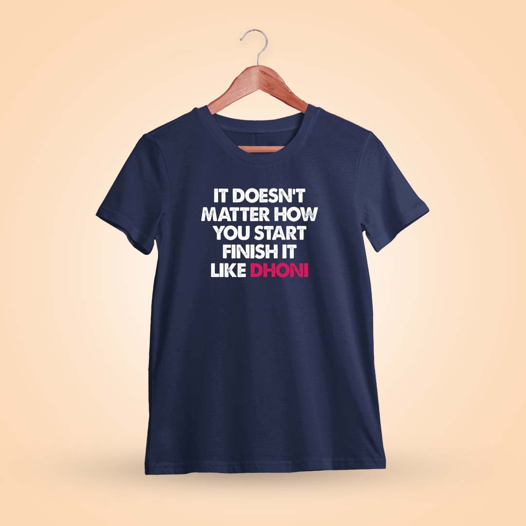 Finish like Dhoni with this iconic T-shirt. Inspired by his legendary composure, it’s a must-have for fans who strive for greatness.