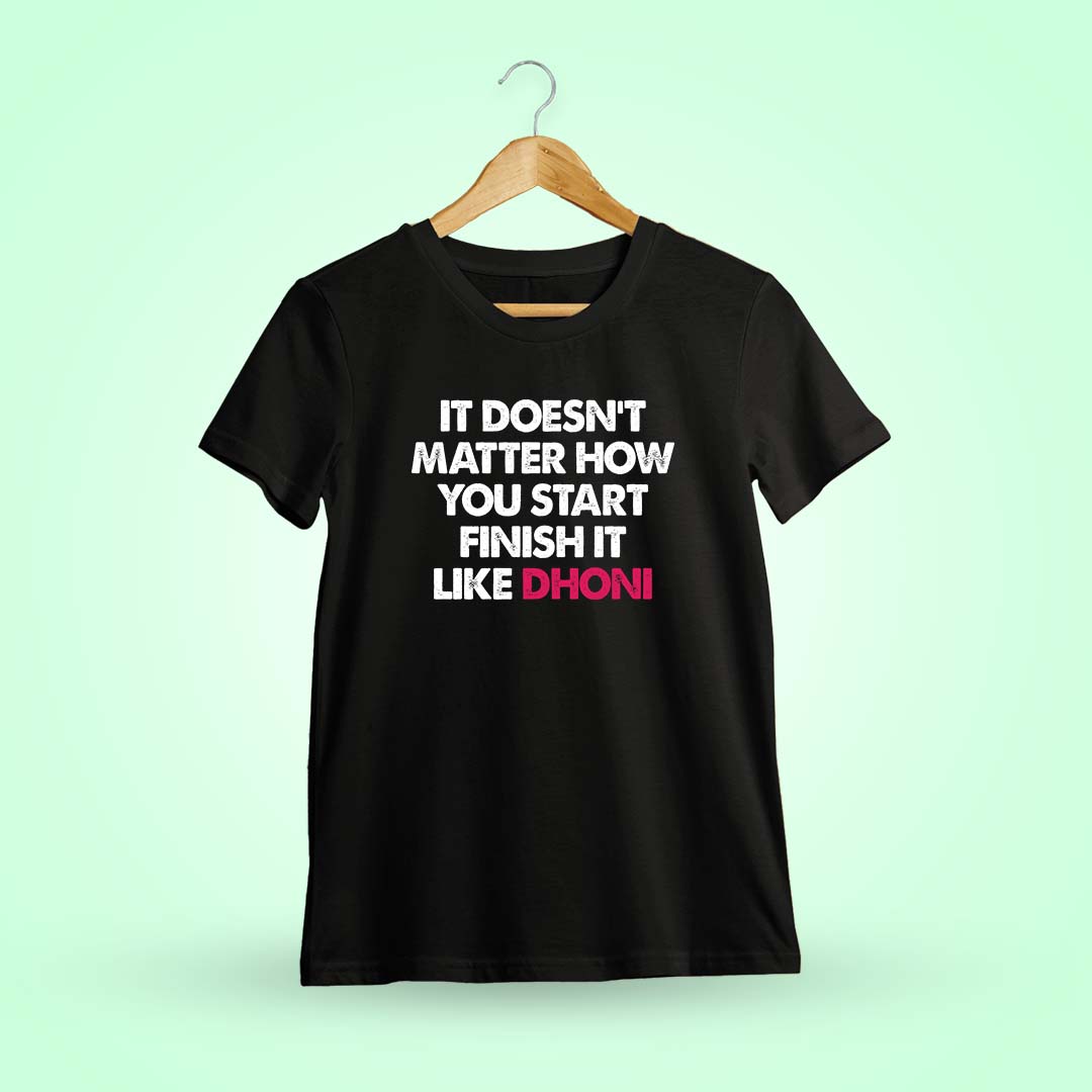 Finish like Dhoni with this iconic T-shirt. Inspired by his legendary composure, it’s a must-have for fans who strive for greatness.