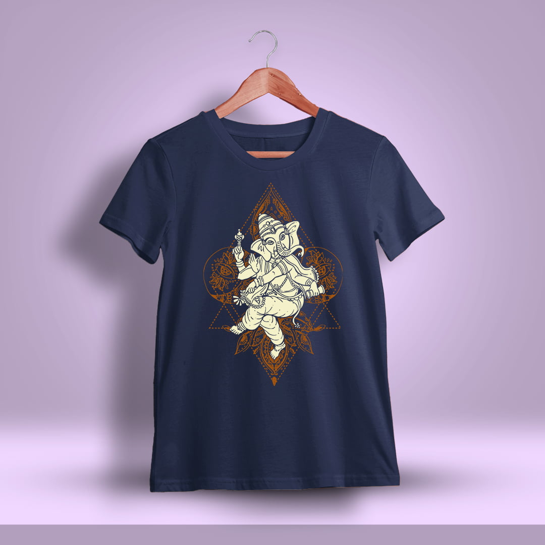 The Ganesh Graphical T-Shirt features a detailed Lord Ganesh design on soft, comfortable fabric, perfect for adding a touch of tradition to your casual style.