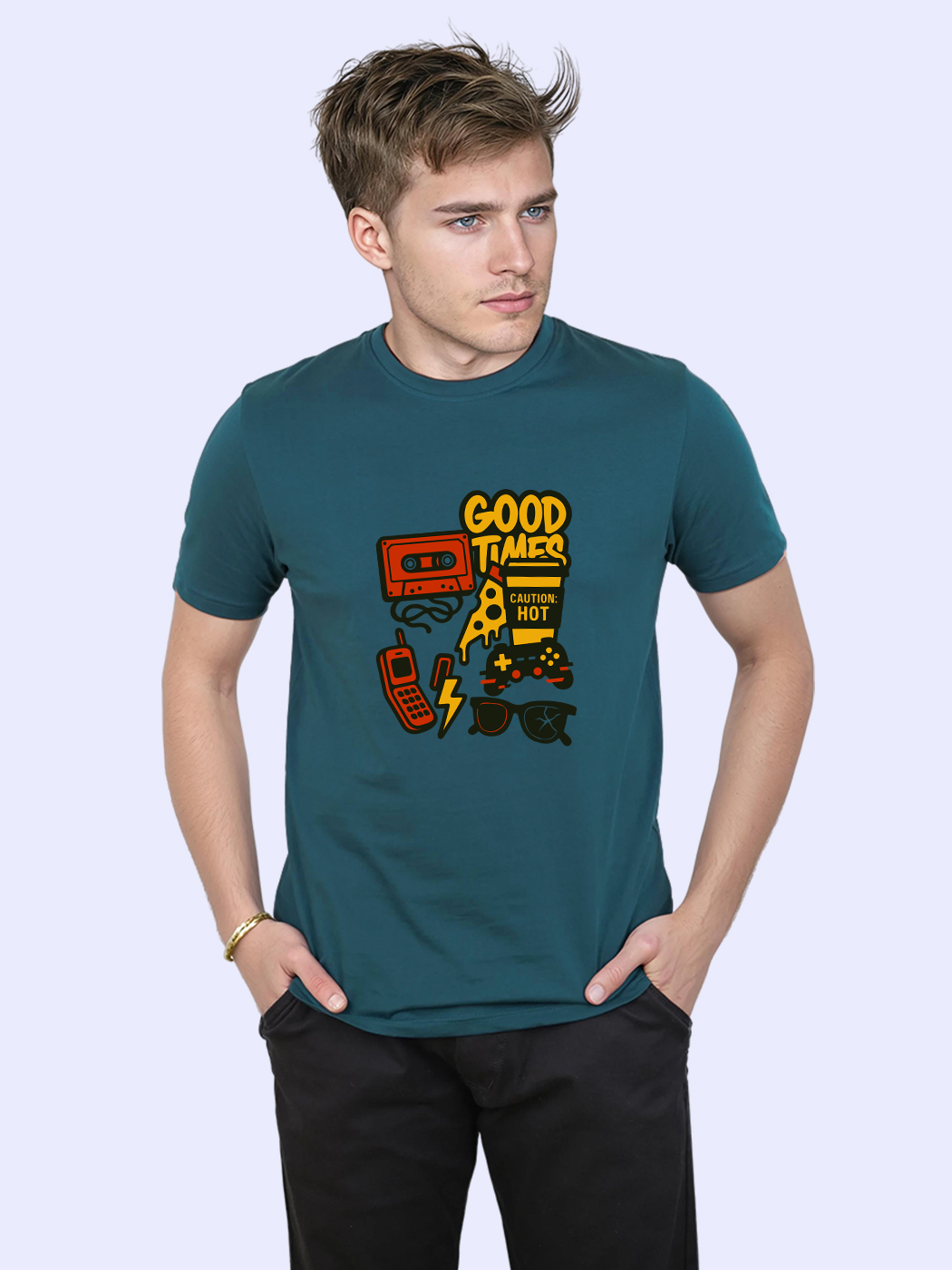 Chill-vibes half sleeve T-shirt for men, perfect for relaxed weekends and casual hangs.