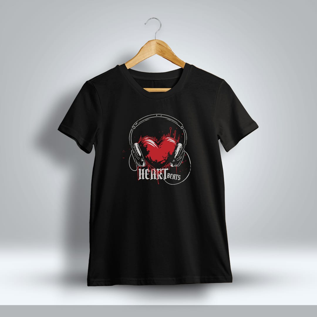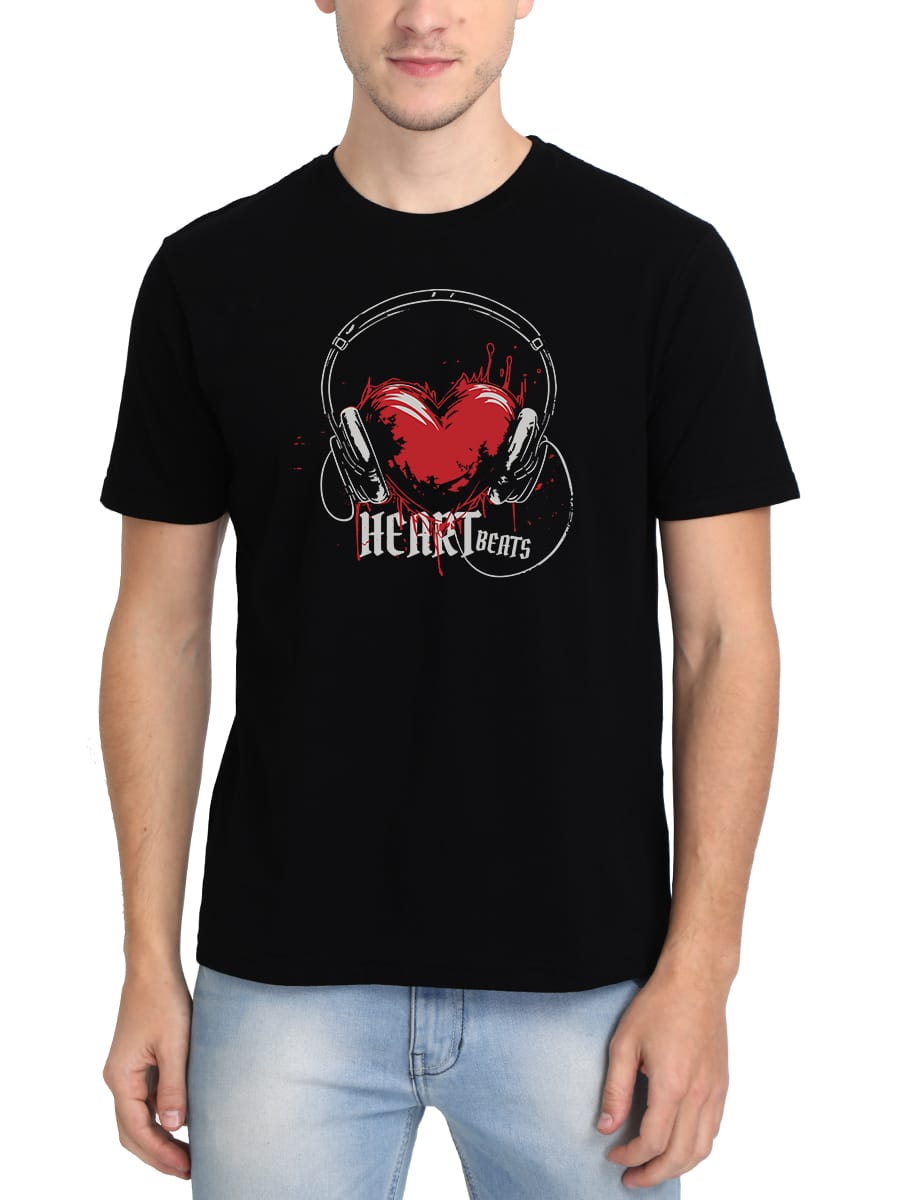 Heart Beats Music Printed T-Shirt is a stylish way to show your love for music, featuring a heartbeat-inspired design that perfectly blends passion and rhythm.