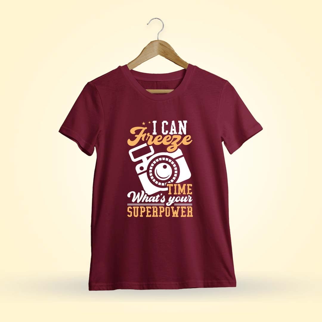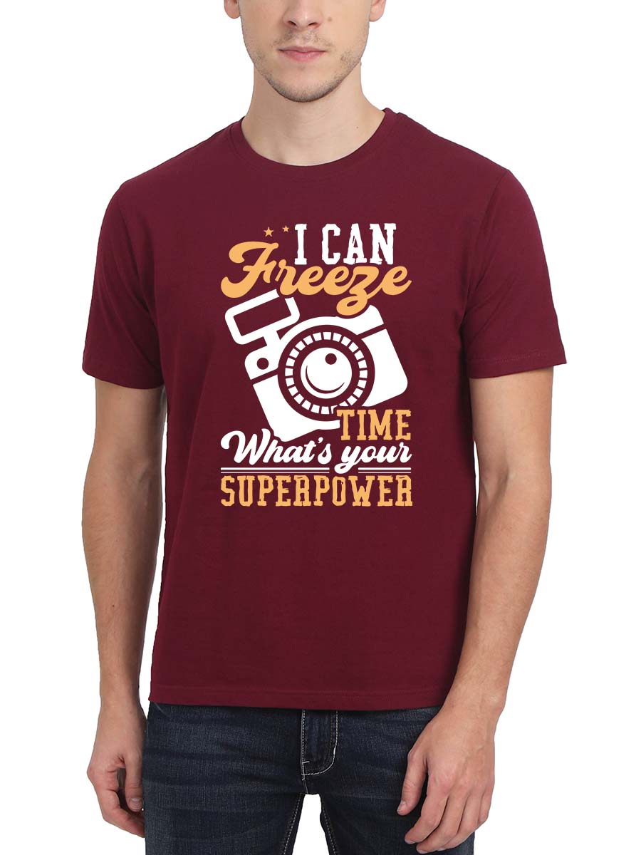 I Can Freeze Time , What’s Your Superpower? Feel empowered in our tee celebrating unique abilities of Photography & Camera. Men Half Sleeve. Shop Now!