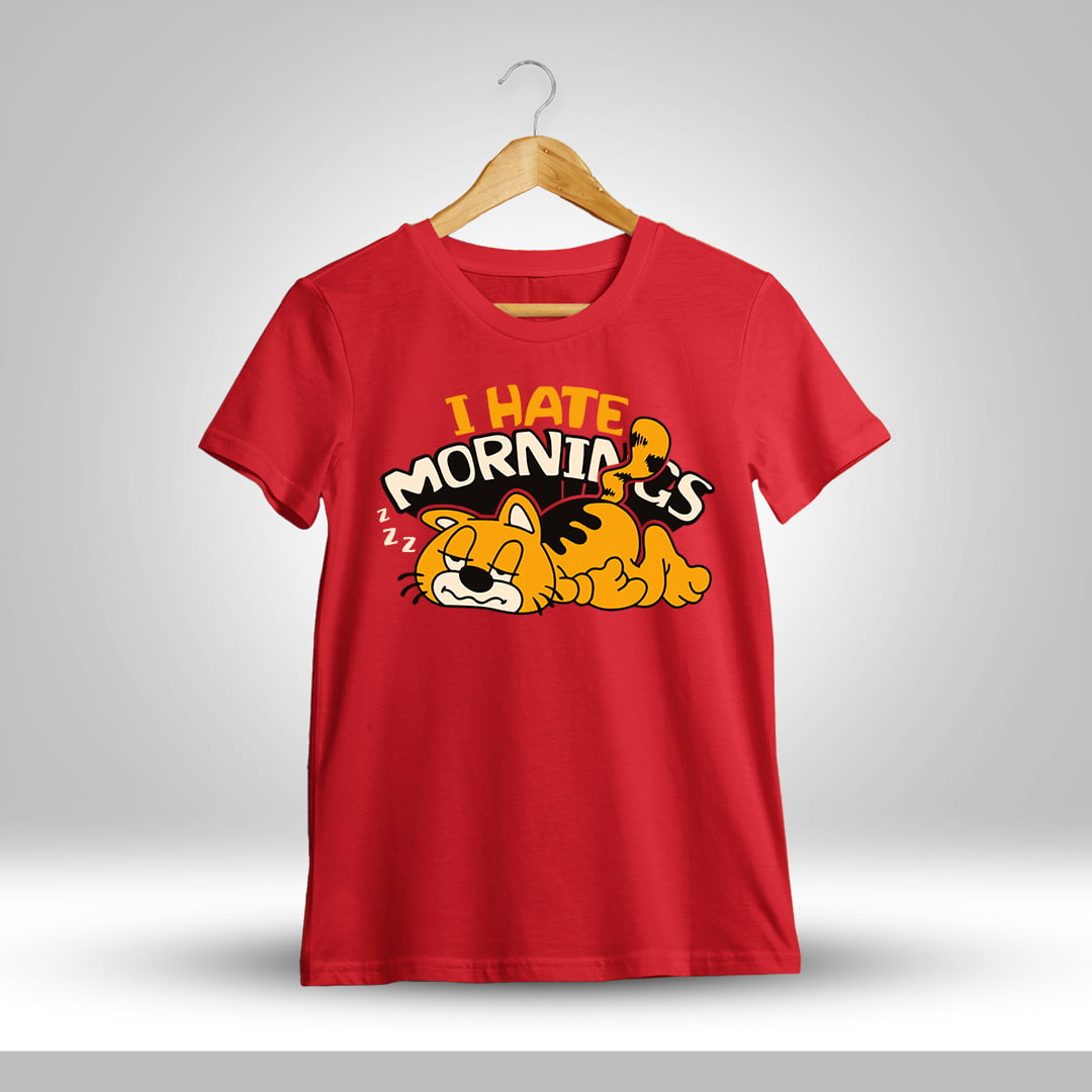 Express your morning struggles with our I Hate Mornings Fun T-Shirt! Soft fabric, humorous design, perfect for those who are not early risers.