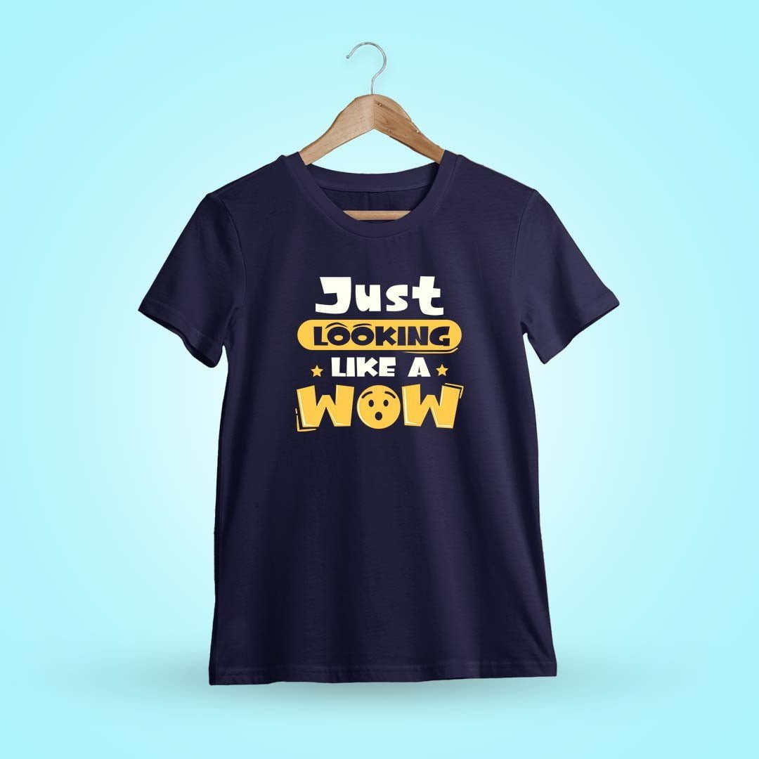 Get noticed effortlessly with our “Just Looking Like A Wow” Men Half Sleeve T-shirt! Elevate your style and make a statement wherever you go.