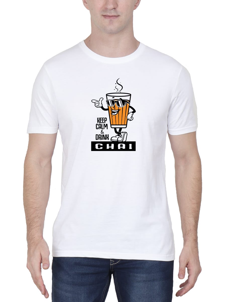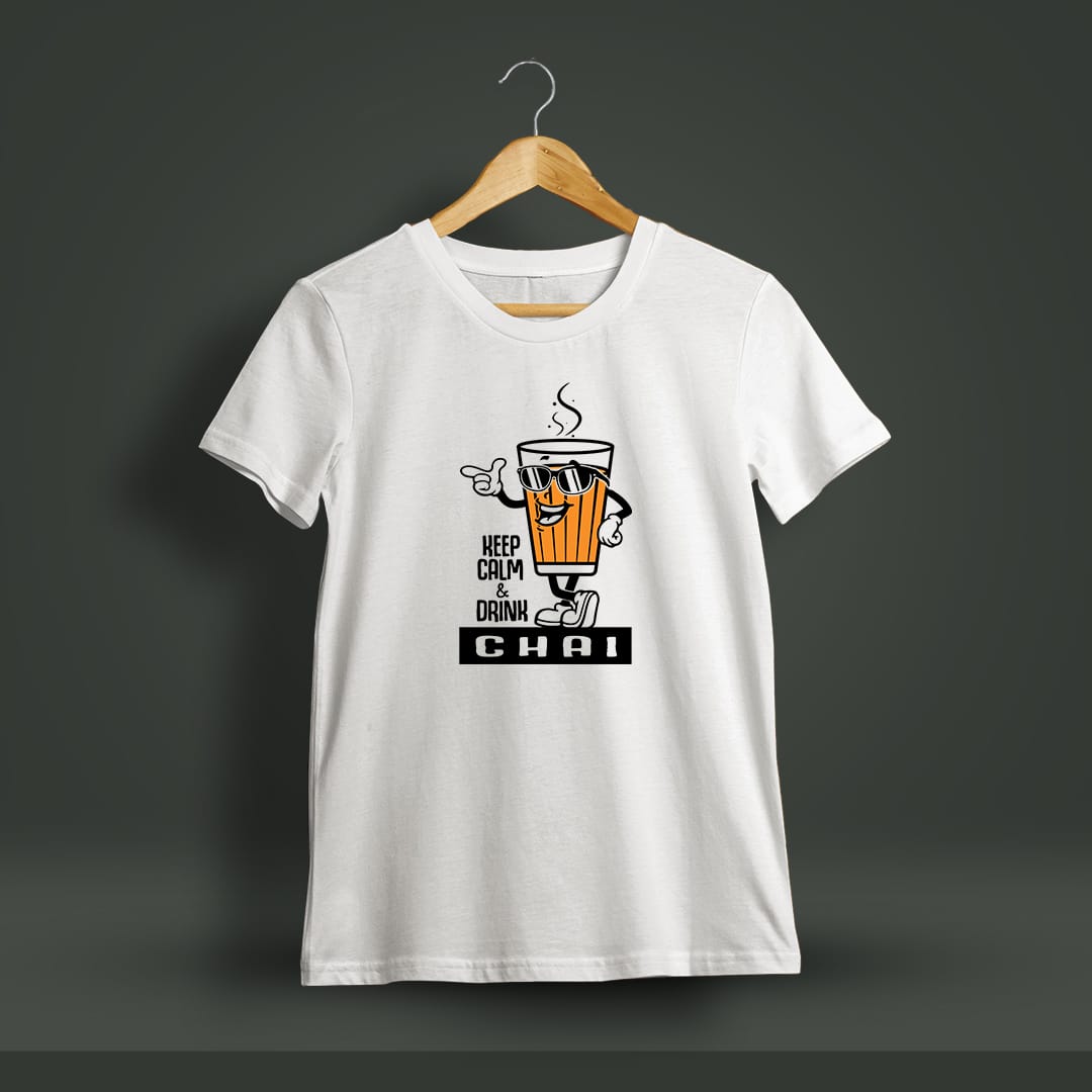 Keep Calm And Drink Chai Printed T-Shirt is for true chai enthusiasts, blending comfort and style with a fun design that celebrates the joy of a perfect tea break.