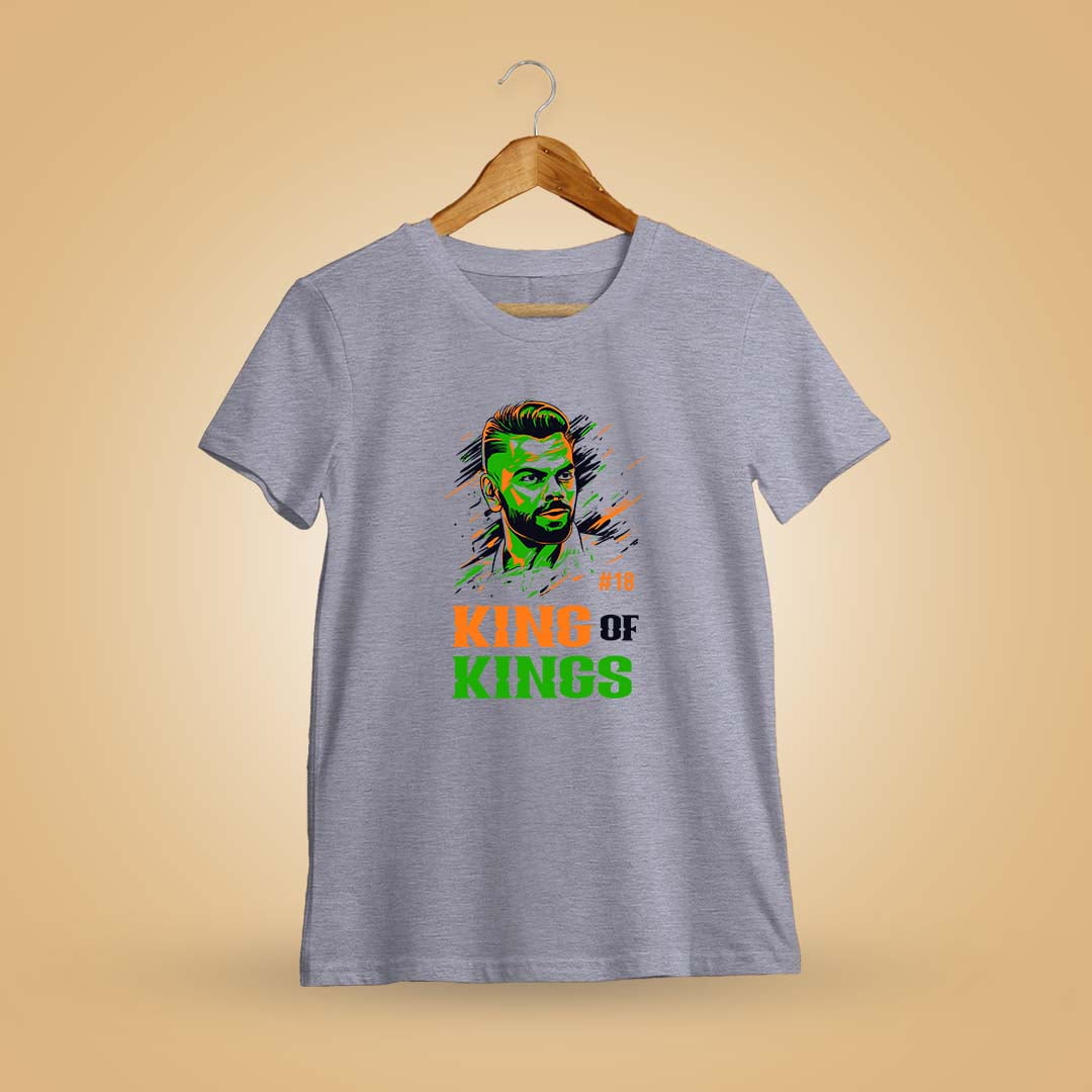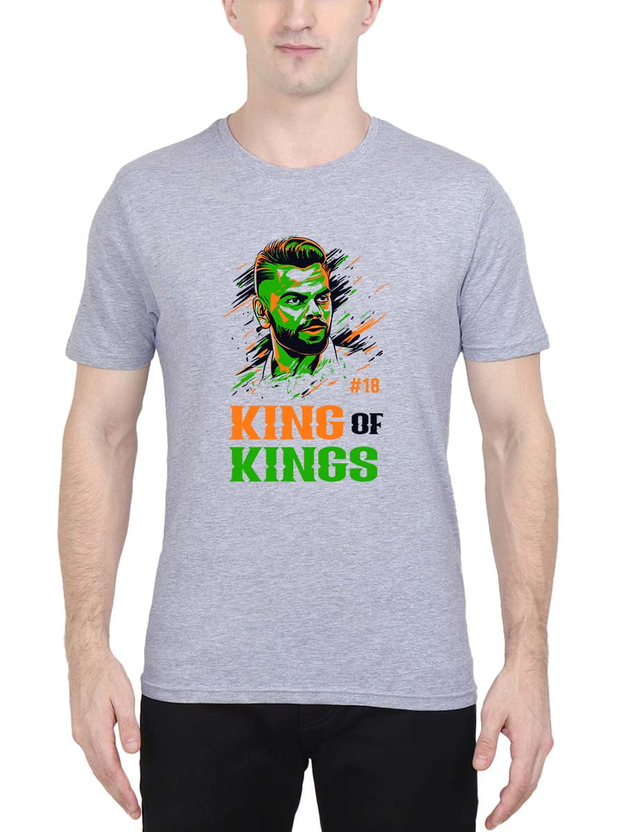 Celebrate cricket royalty with King Of Kings Virat Kohli T-Shirt. Bold design pays homage to Kohli’s reign as cricket’s undisputed king.
