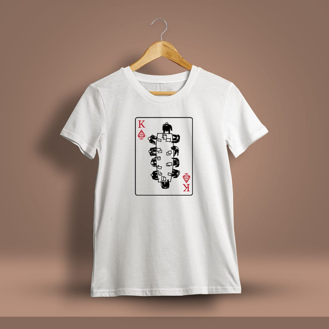 The “King of Spades” graphic t-shirt features a bold, stylish design showcasing the powerful card king, perfect for those who embrace confidence and individuality.