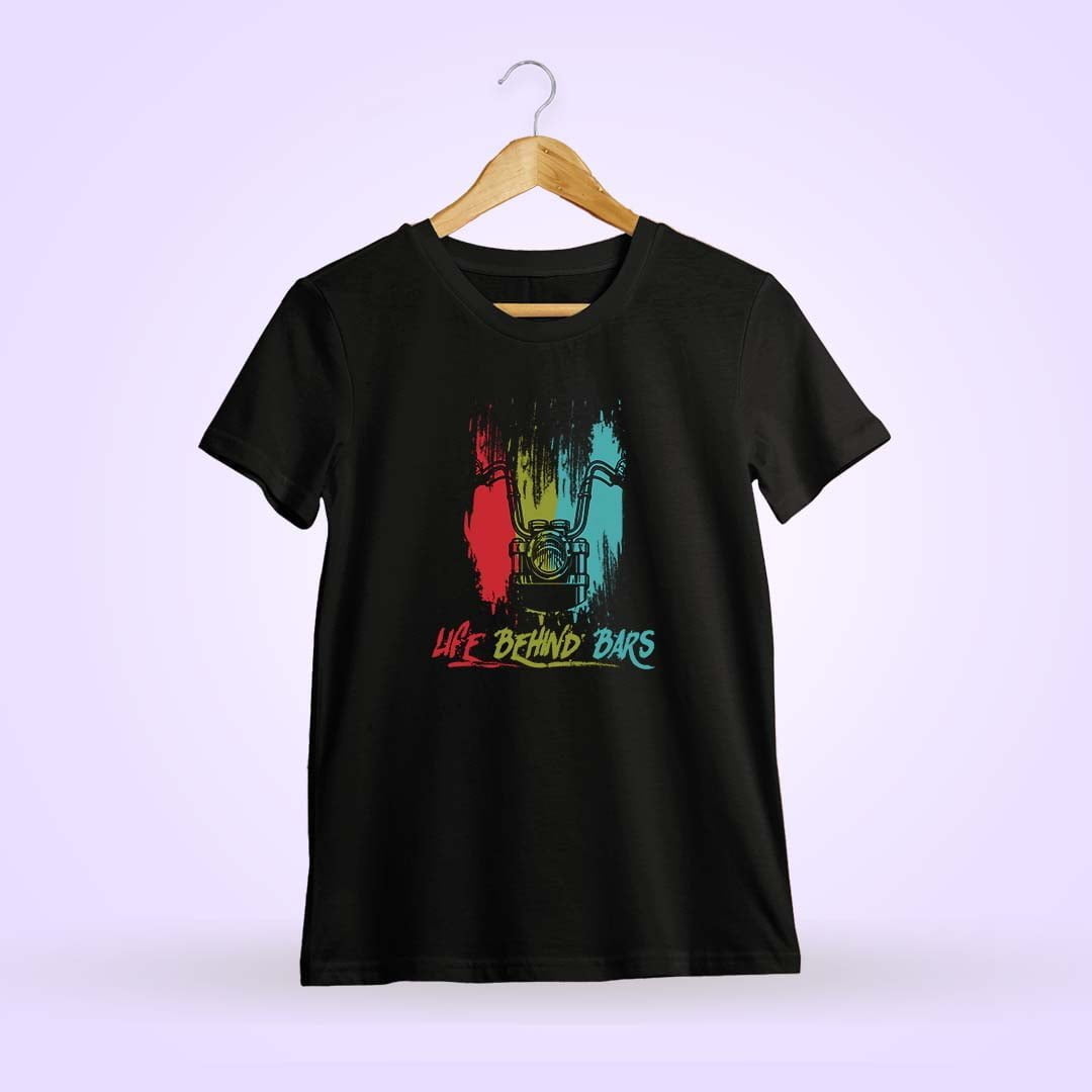 Life Behind Bars T-shirt : Embrace the biker lifestyle. Ride free bike. Available as Men Half sleeve. Shop now!