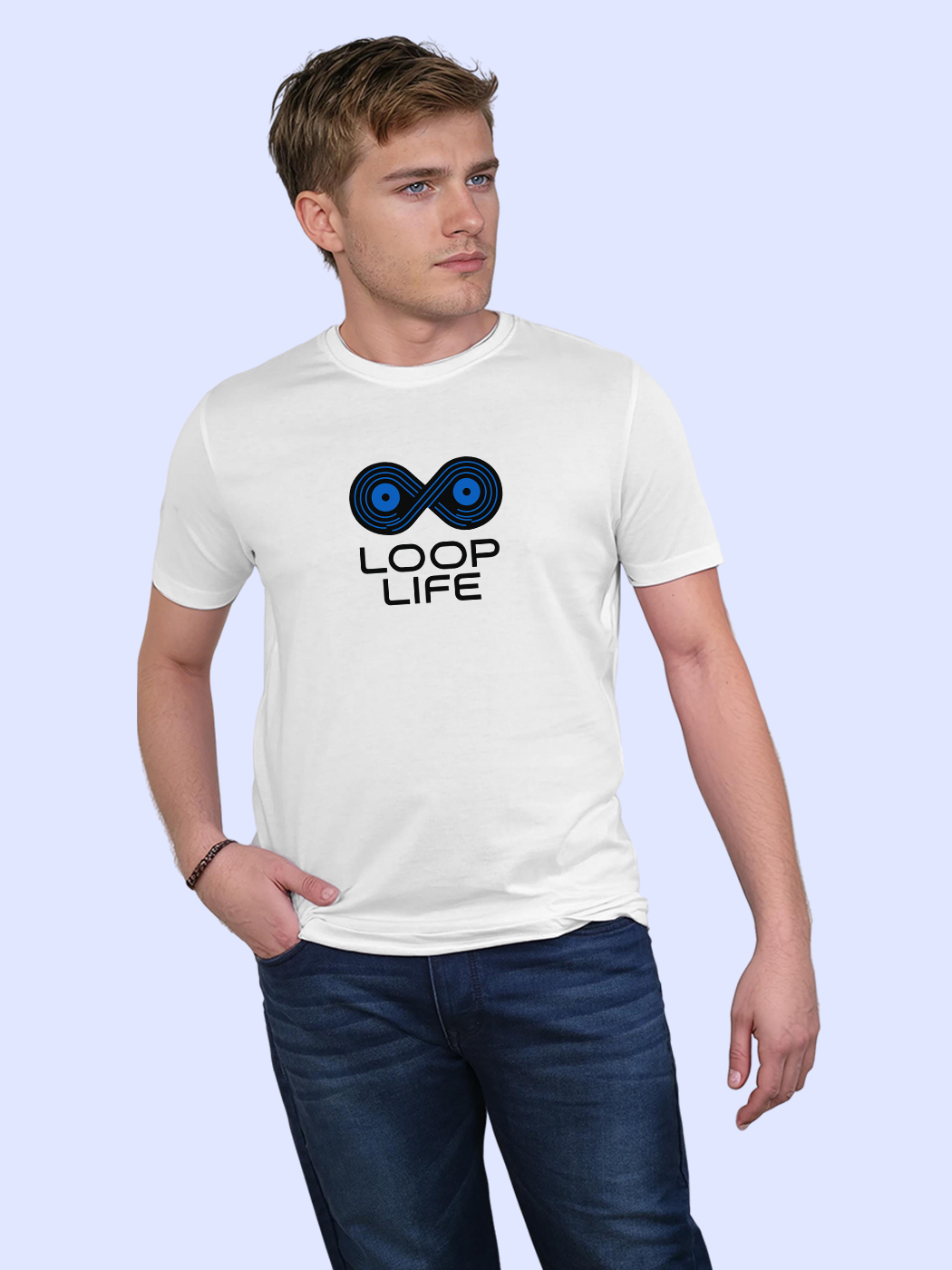 Loop life never ends—this half sleeve tee captures endless rhythm. Ideal for music enthusiasts who vibe with non-stop beats and lifestyle energy.