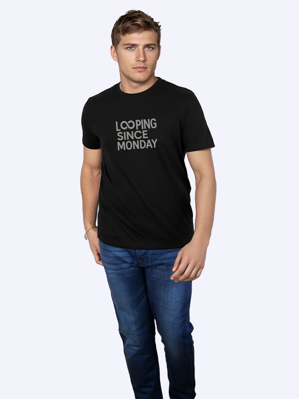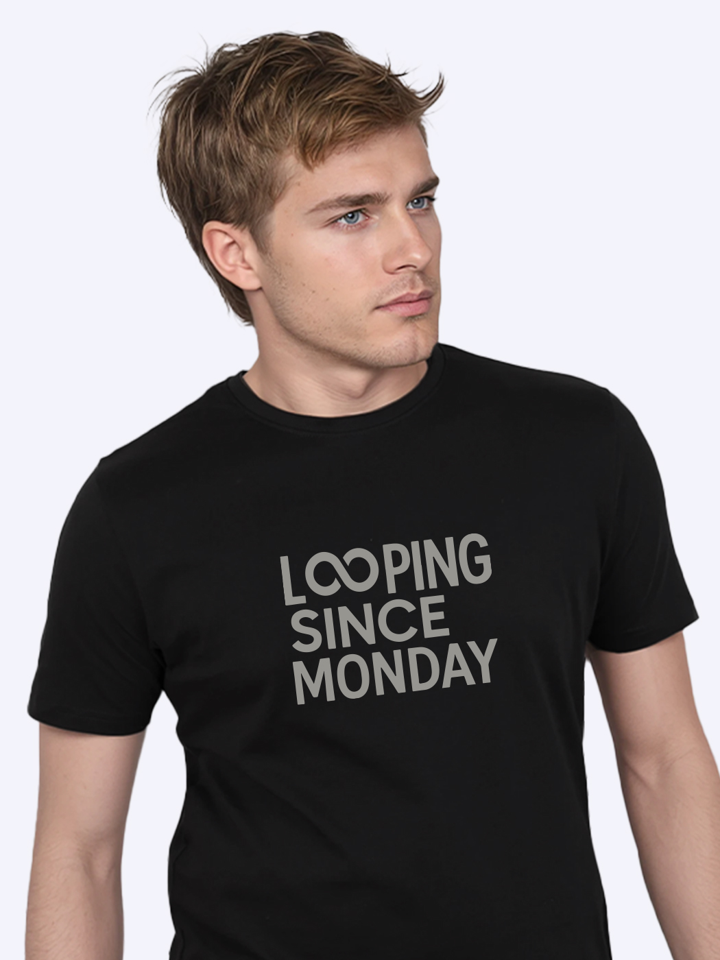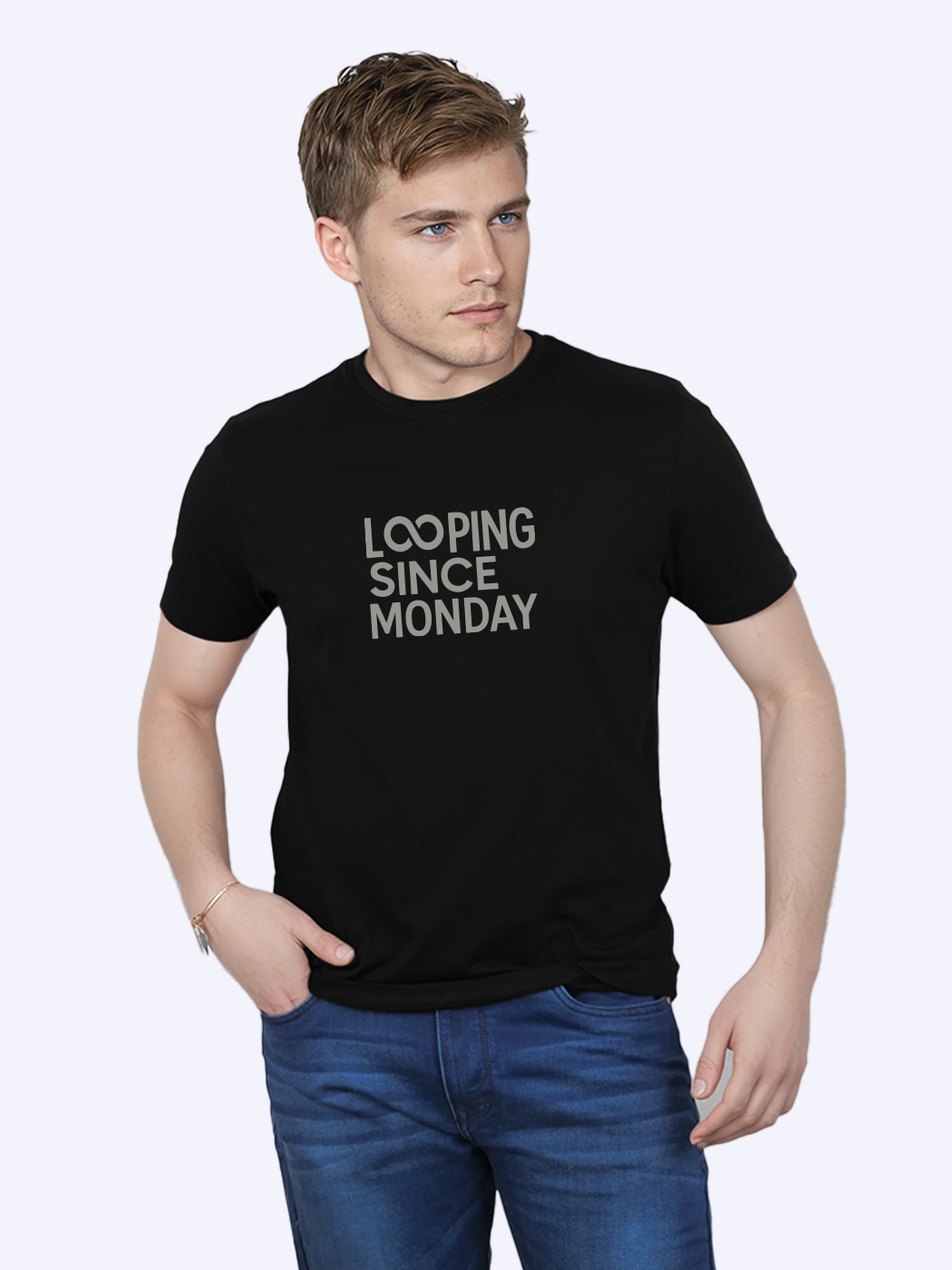Looping Since Monday Printed T-Shirt for men with half sleeves. Perfect blend of comfort and casual style. Ideal for everyday wear, parties, or gifting.