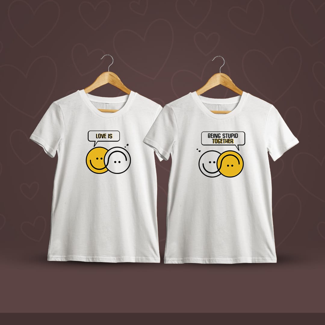 Love Is Being Stupid Together Couple T-Shirt celebrates fun and togetherness. Made with soft, premium fabric, it?s a playful way to showcase your unique bond.
