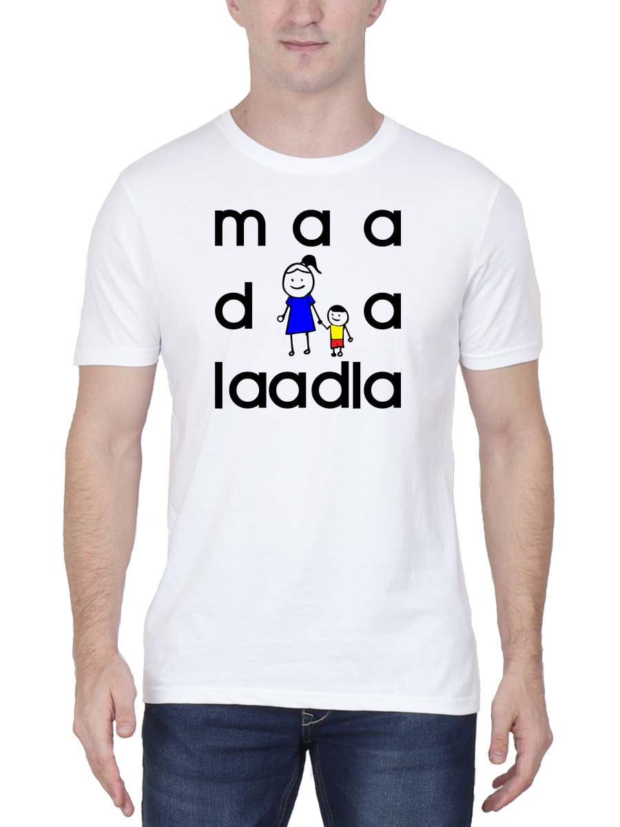 Maa Da Laadla Hindi T-Shirt proudly showcases the cherished bond between a mother and her beloved child, blending cultural warmth with stylish comfort.