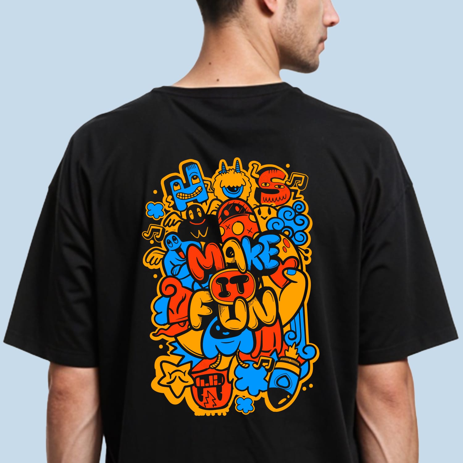 Stay trendy with the Make It Fun Back Printed Oversized T-Shirt. Soft, breathable, and stylish, it?s perfect for making a bold, carefree statement in comfort.