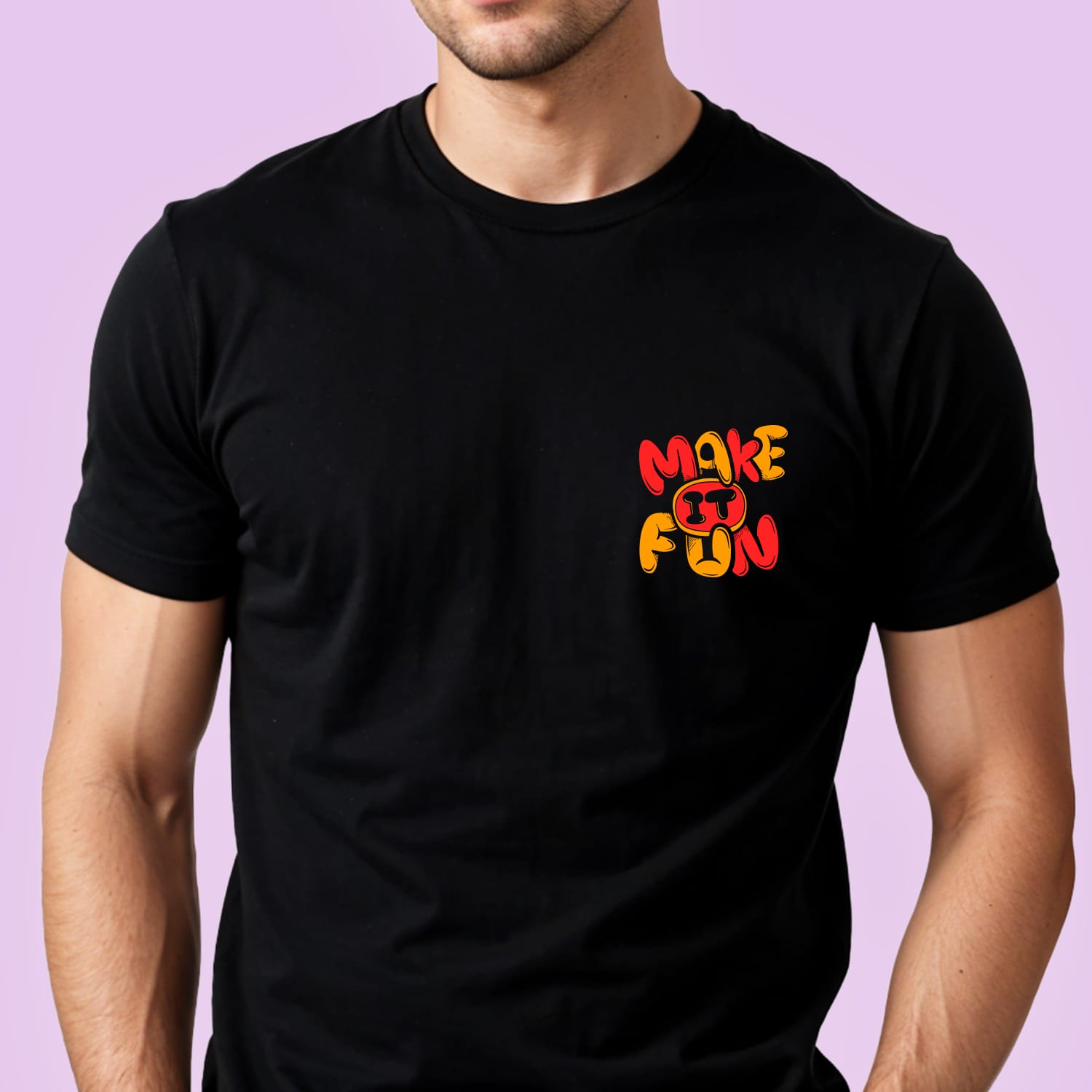 Add energy to your style with the Make It Fun Back Printed T-Shirt. Crafted for comfort, this design reminds you to keep life exciting and playful.