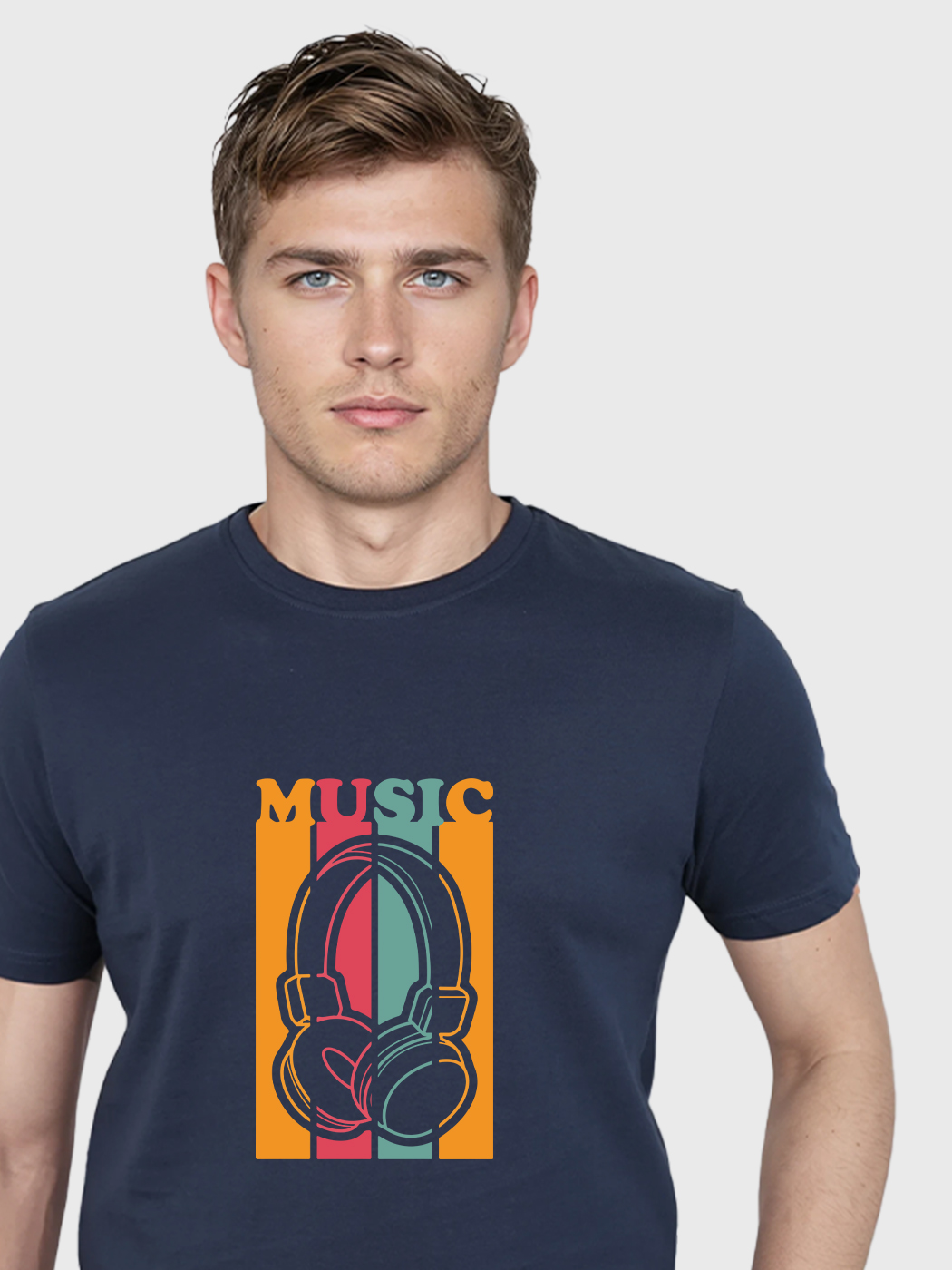 Elevate your style with our Music T-shirt featuring Earphone and musical notes, it’s perfect for music lovers. Men Half Sleeve T-shirt -Get yours now.