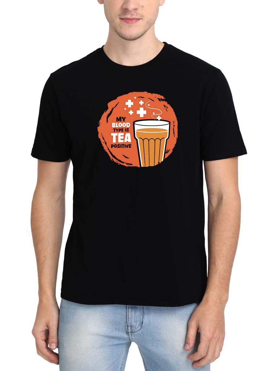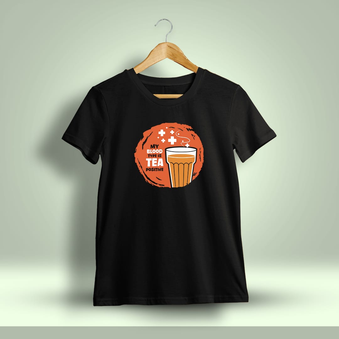 My Blood Type Is Tea Positive Printed T-Shirt is the perfect pick for tea lovers, combining humor and style with a witty design that celebrates your love for chai.