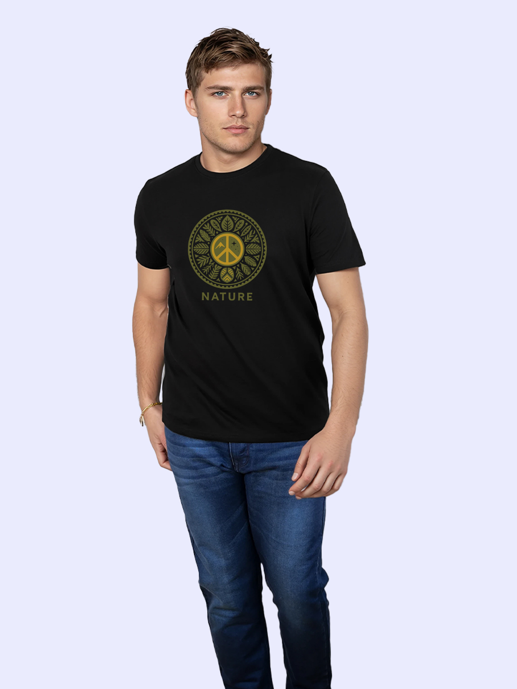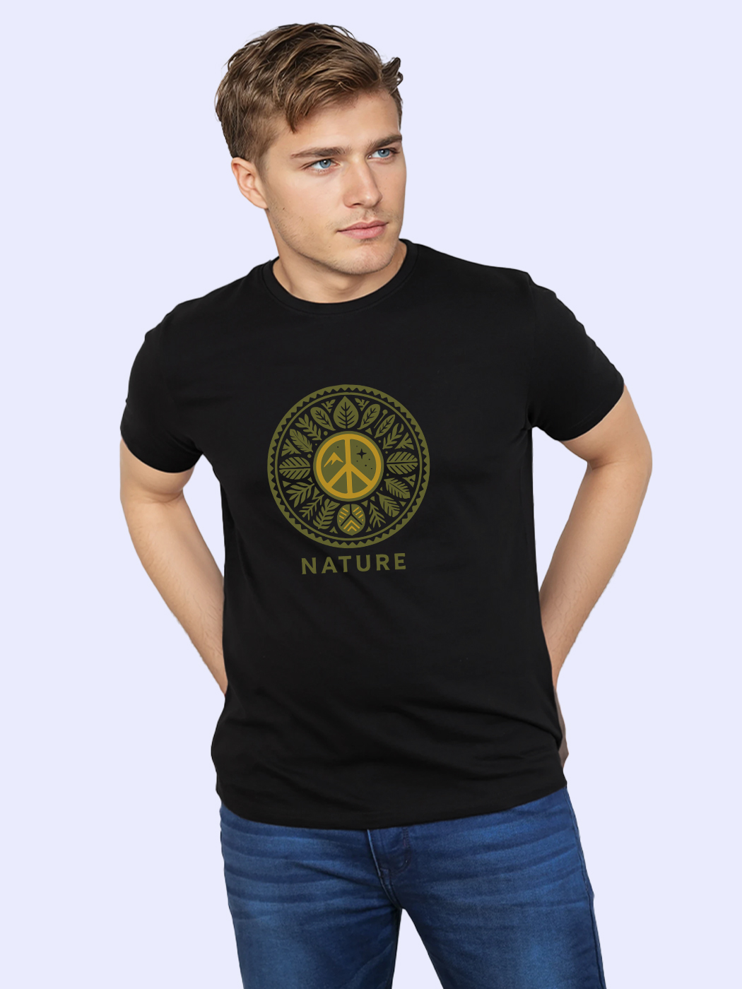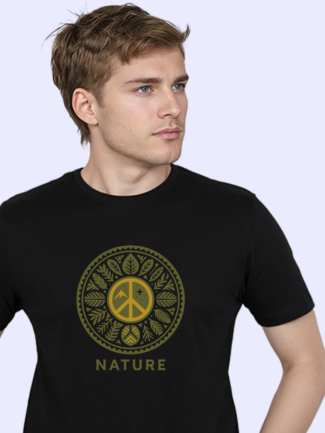 Nature-themed half sleeve T-shirt for men, bringing peaceful and earthy aesthetics to casual wear.