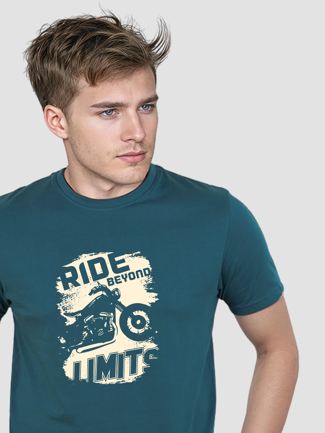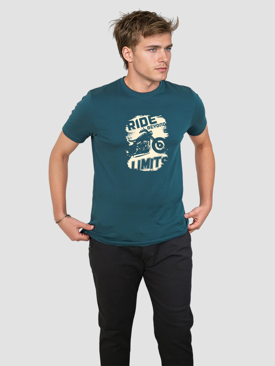 Ride Beyond Limits Bike Printed T-Shirt is designed for true riders, featuring a bold bike-themed graphic that inspires adventure and limitless exploration.