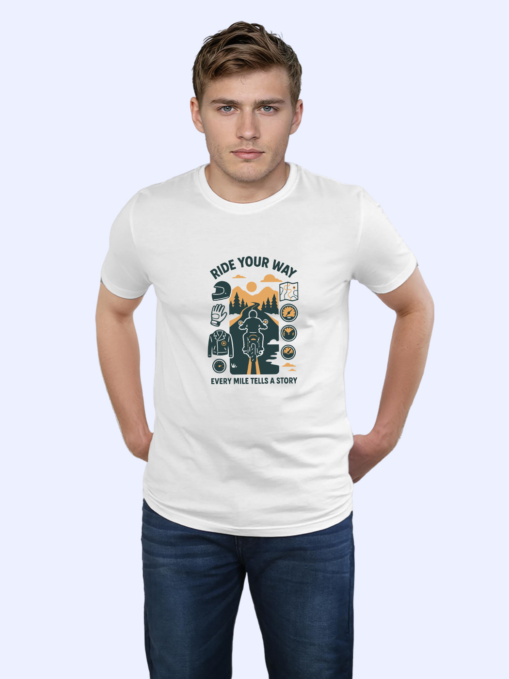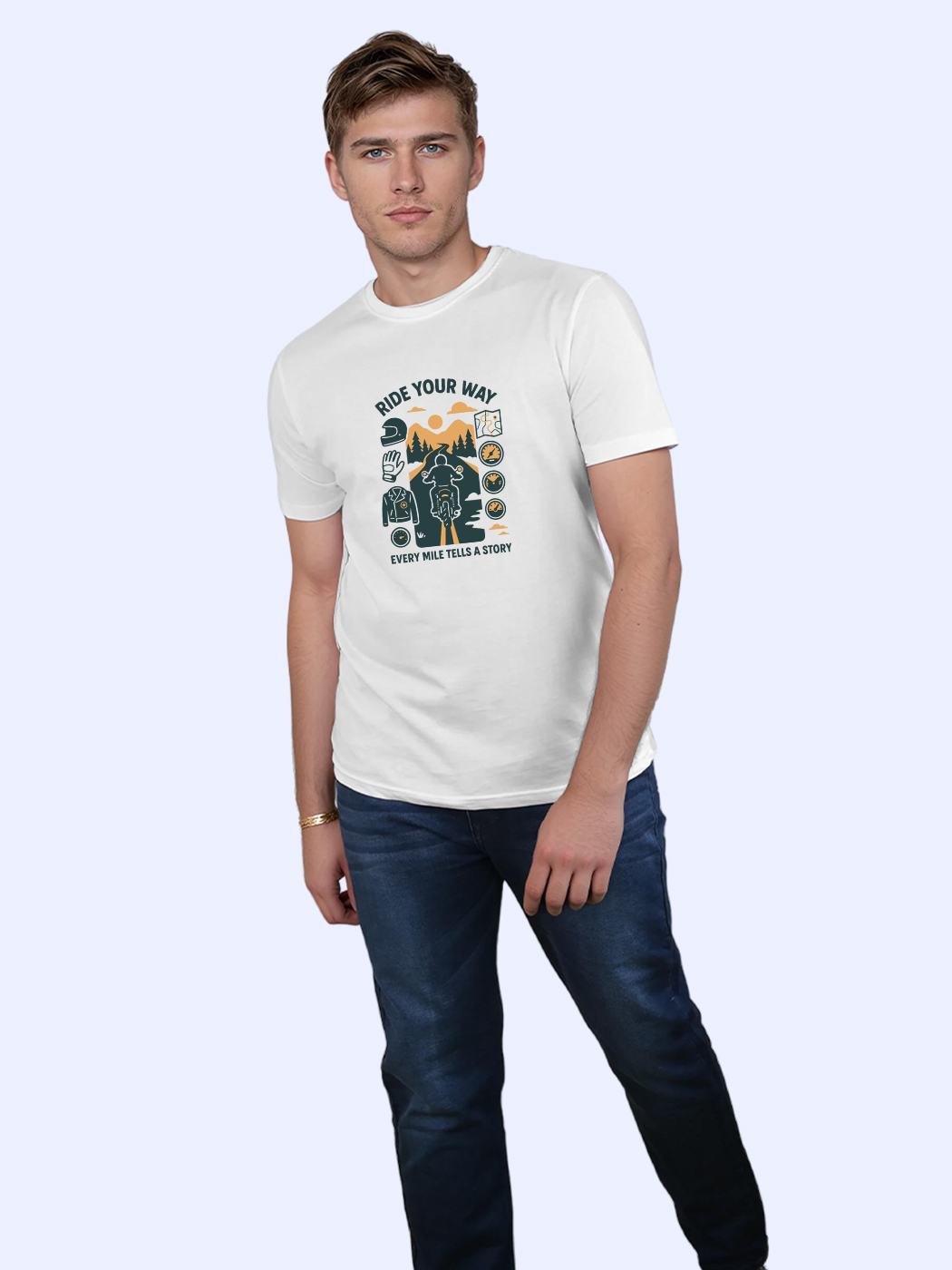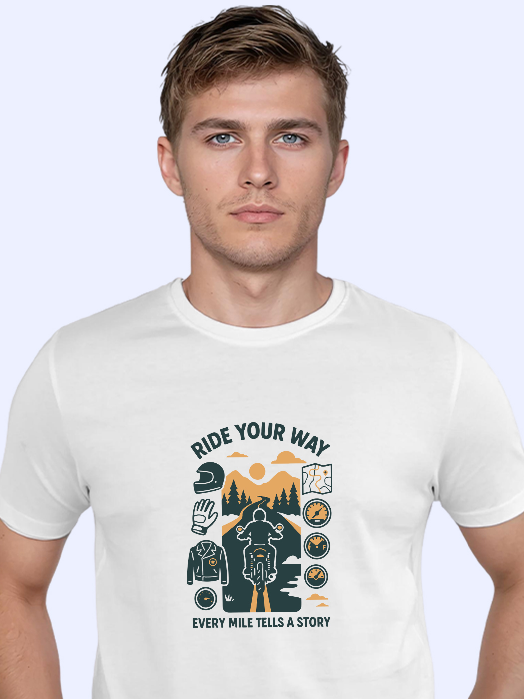 Ride Your Way T-Shirt for men with half sleeves. Perfect blend of comfort and casual style. Ideal for everyday wear, parties, or gifting.