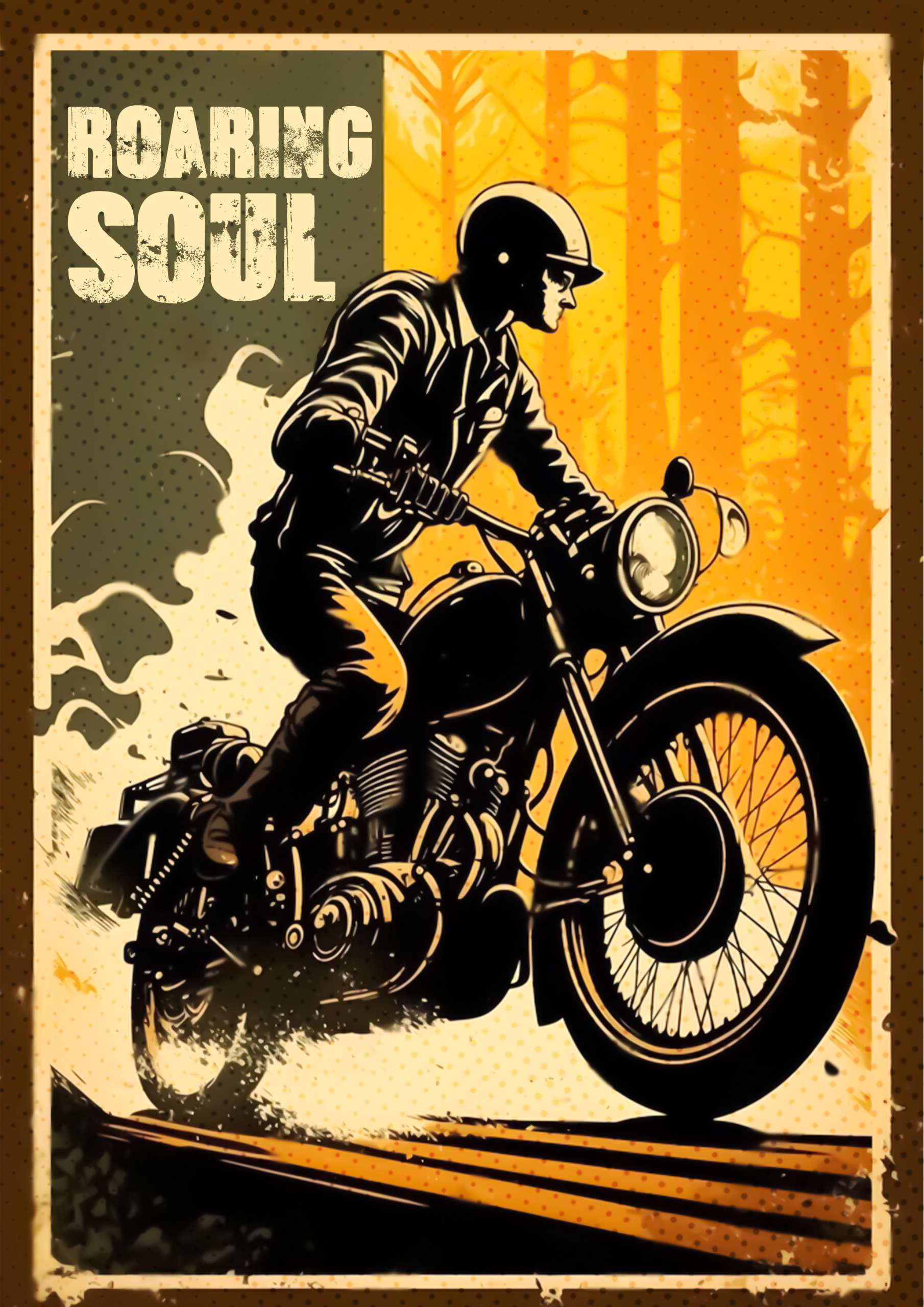 Unleash your adventurous spirit with our ‘Roaring Soul’ bike poster. Feel the thrill of the ride and embrace the freedom of the open road!