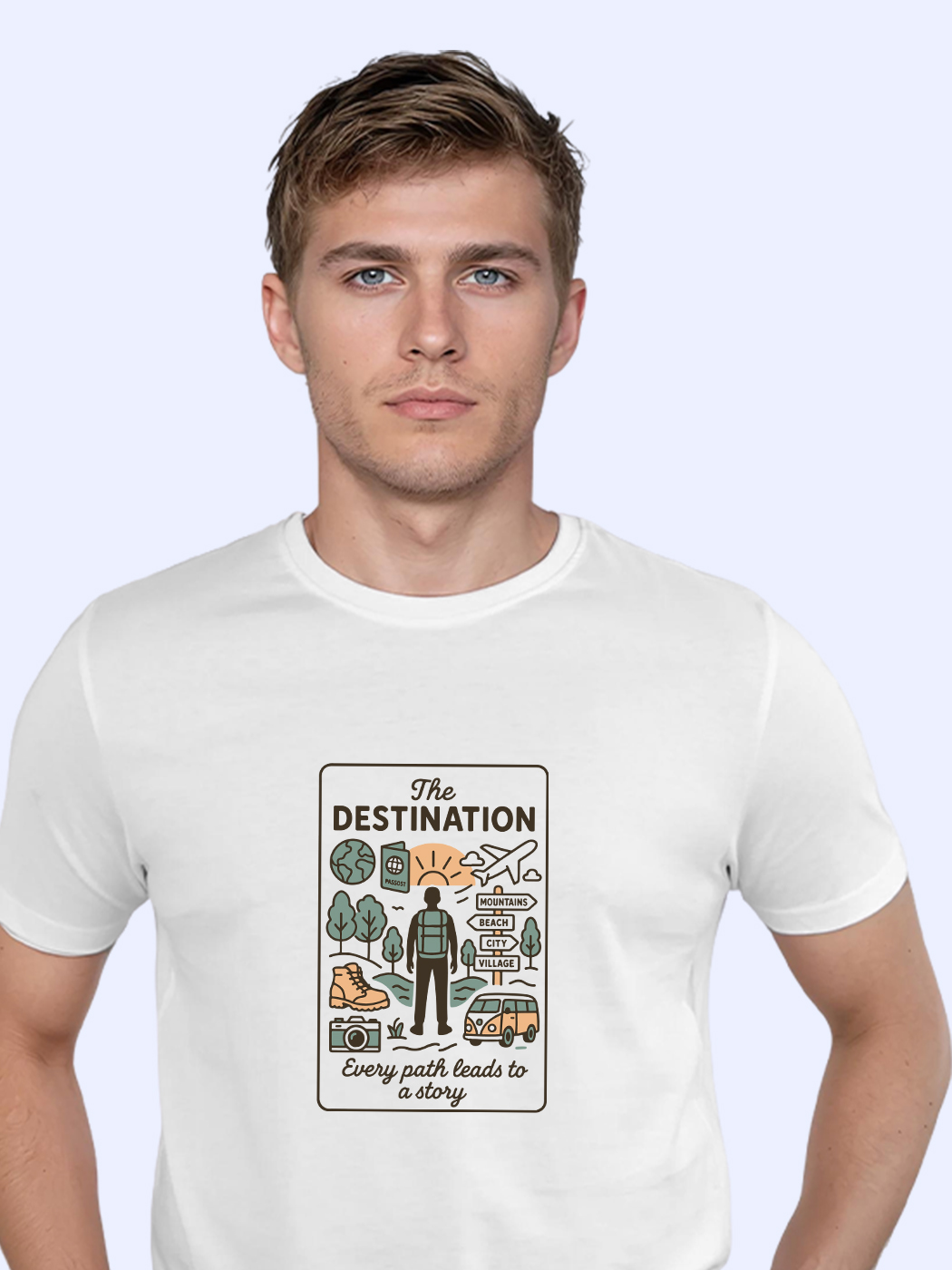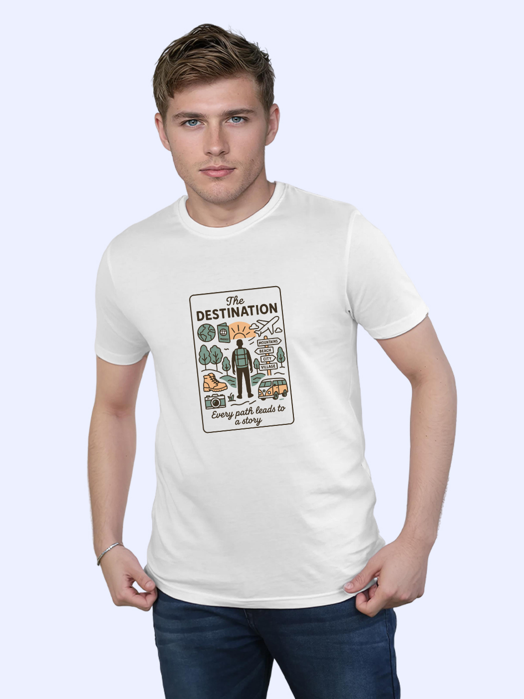 The Destination T-Shirt for men with half sleeves. Perfect blend of comfort and casual style. Ideal for everyday wear, parties, or gifting.