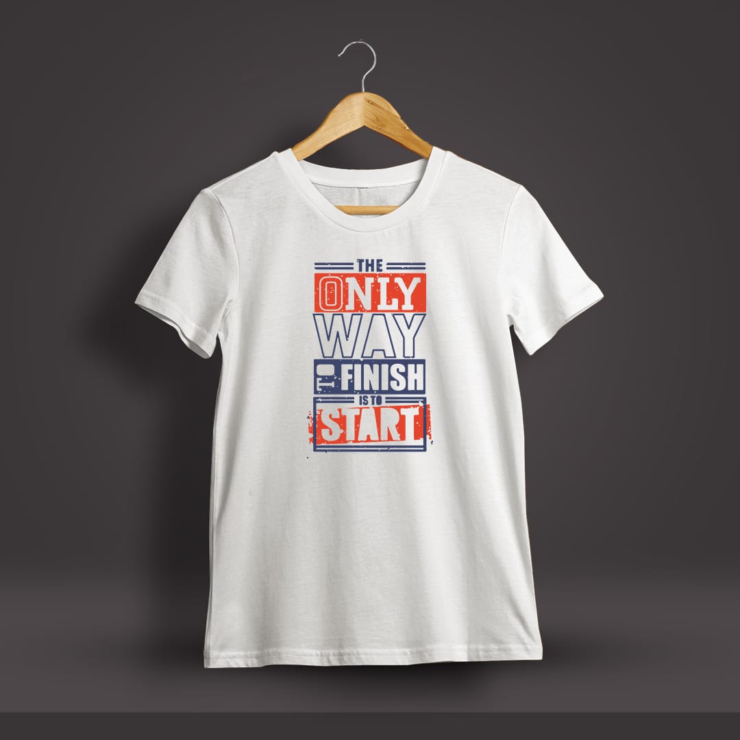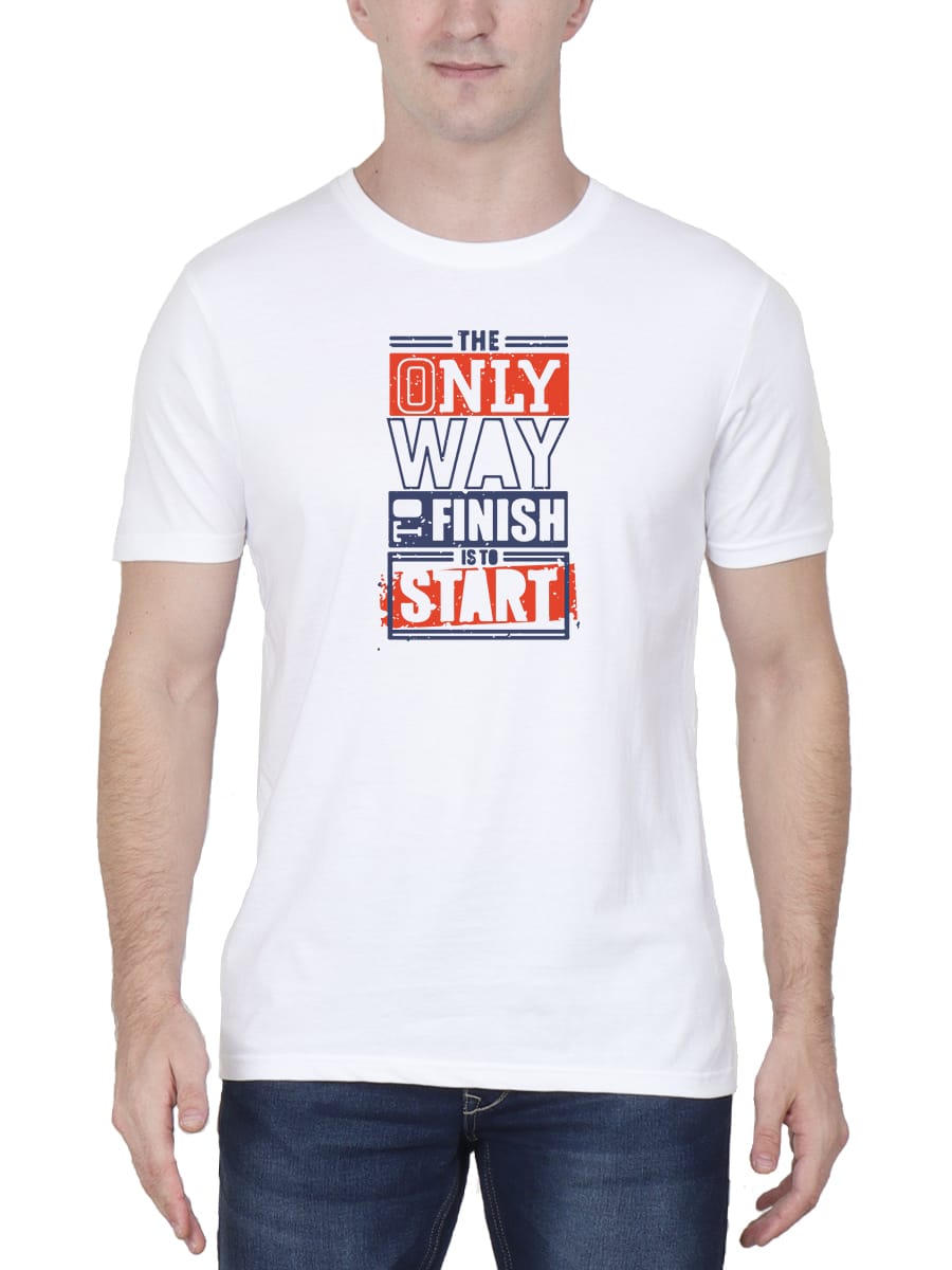 The Only Way To Finish Is To Start Printed T-shirt motivates you to take the first step toward success, inspiring action, perseverance, and a never-give-up attitude.
