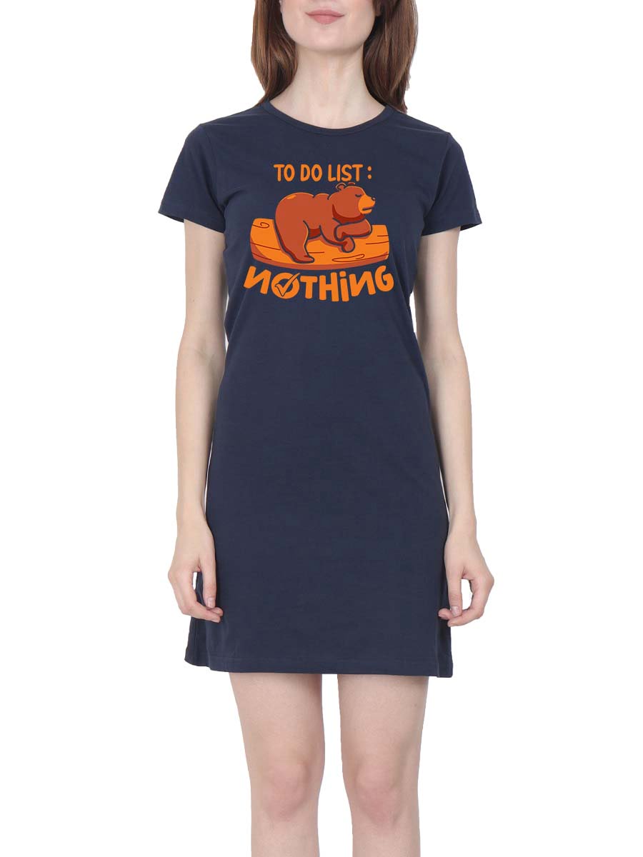 Embrace relaxation with our “To Do List: Nothing” fun t-shirt dress! Chill vibes, soft fabric, and a reminder to take it easy.