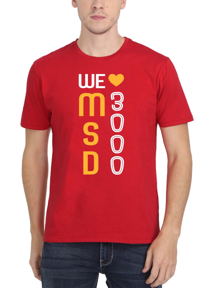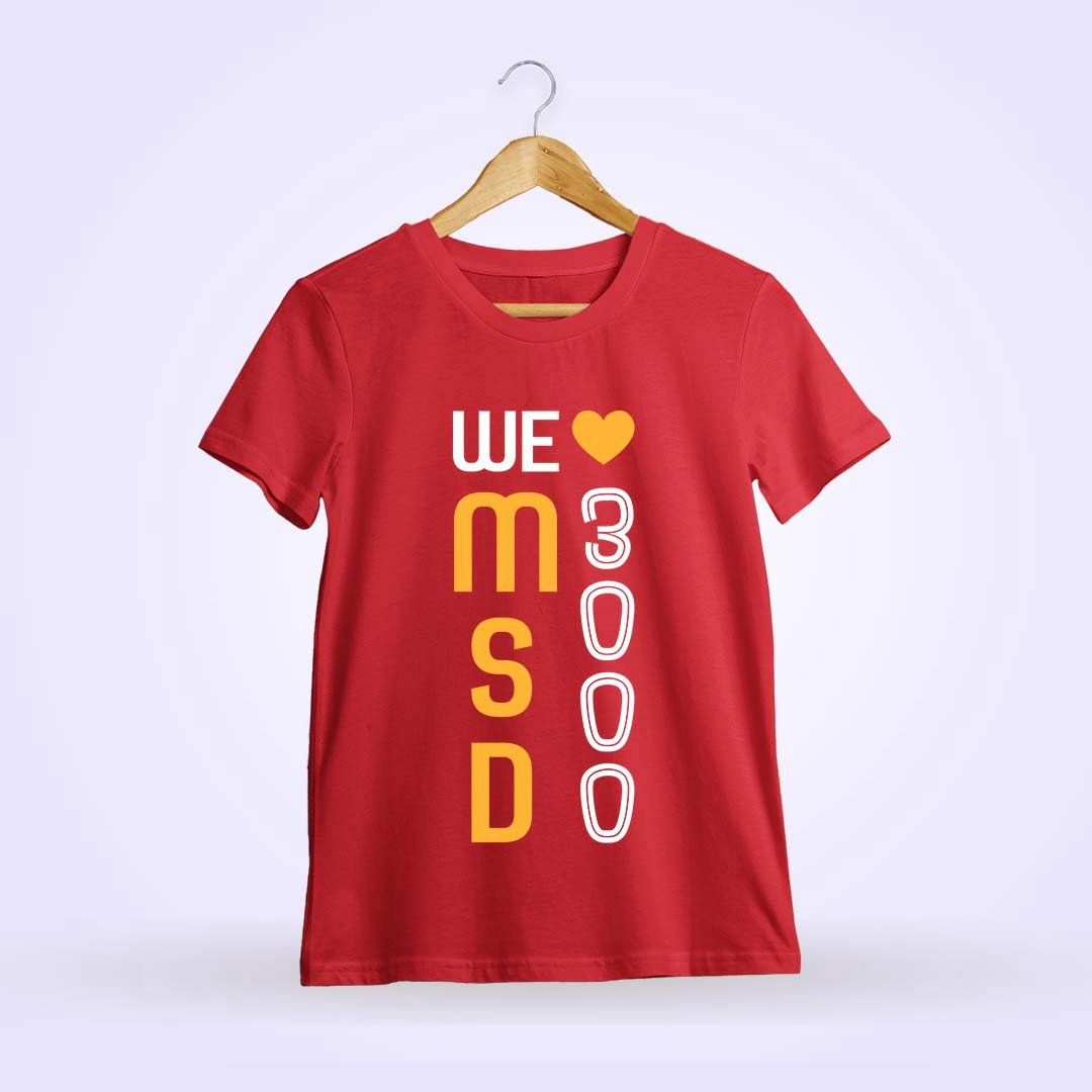 Declare your love for MSD with the “We Love MSD 3000” Dhoni T-shirt. Perfect for fans celebrating Dhoni’s monumental impact on cricket.