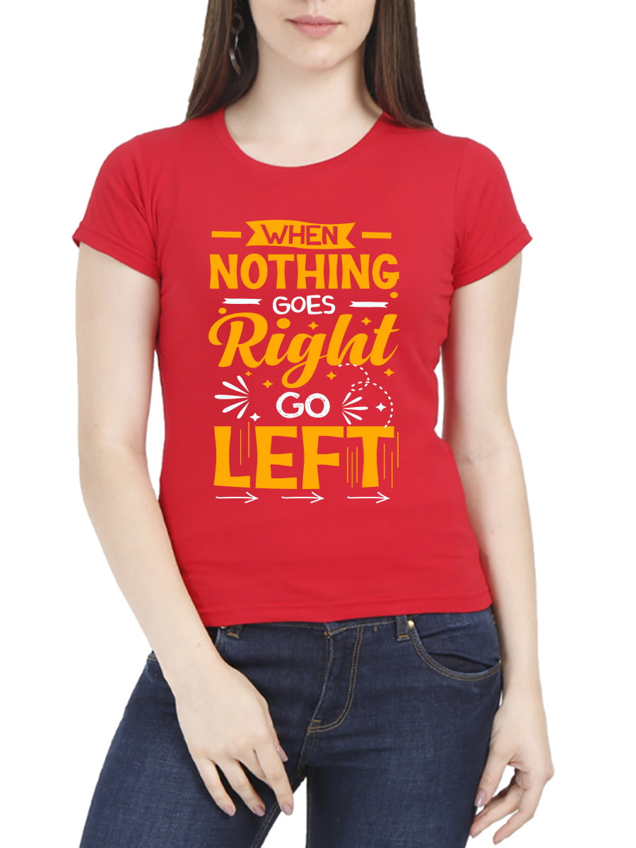 Stay positive with our When Nothing Goes Right Go Left Quotes T-Shirt! Soft fabric, inspiring design, perfect for a motivational touch in your casual wardrobe.