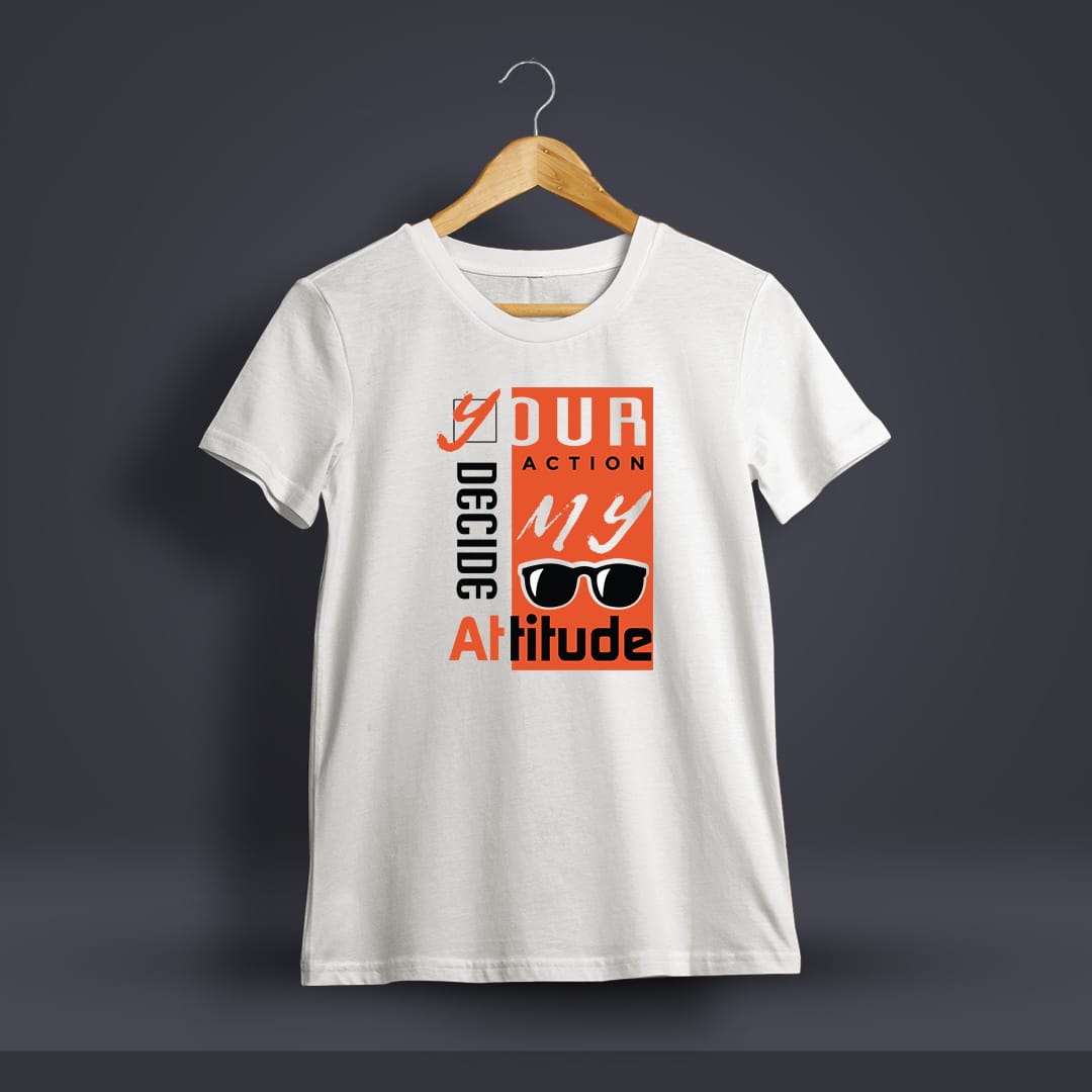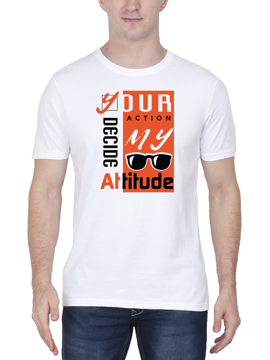 Your Action Decide My Attitude Printed T-Shirt features a bold message, empowering you to take control of your mindset, crafted from soft, comfortable fabric.